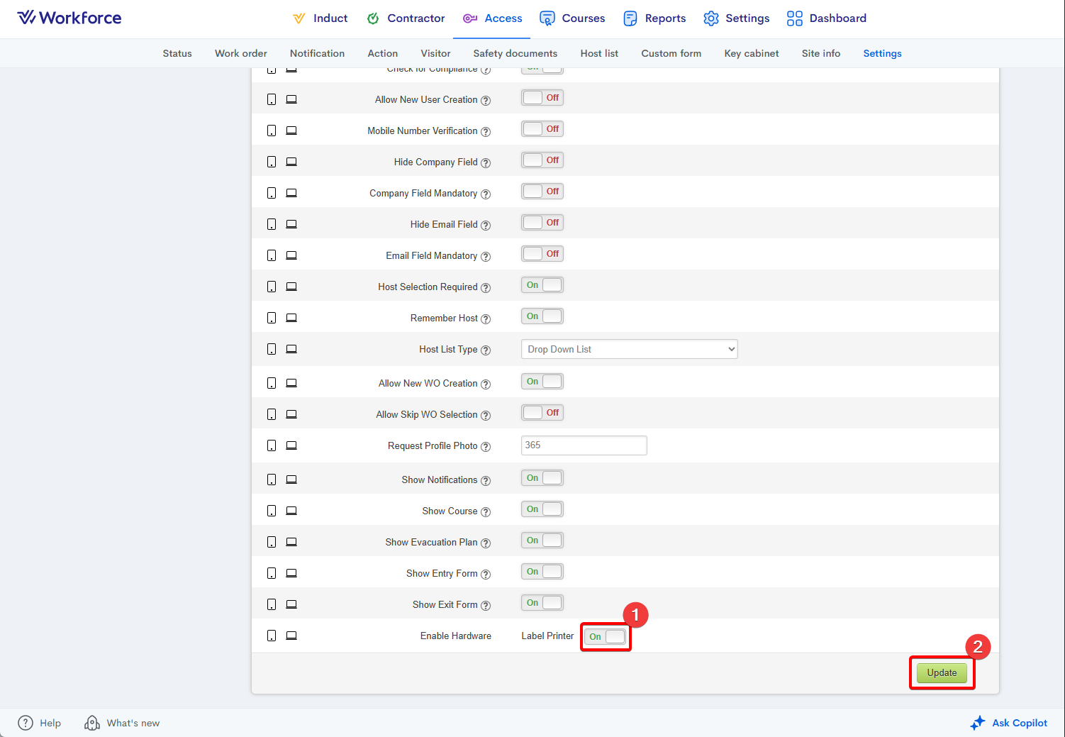 Configure Rapid GO settings for all sites to print every time anyone signs in on either the iPad or via the QR code on their mobile device