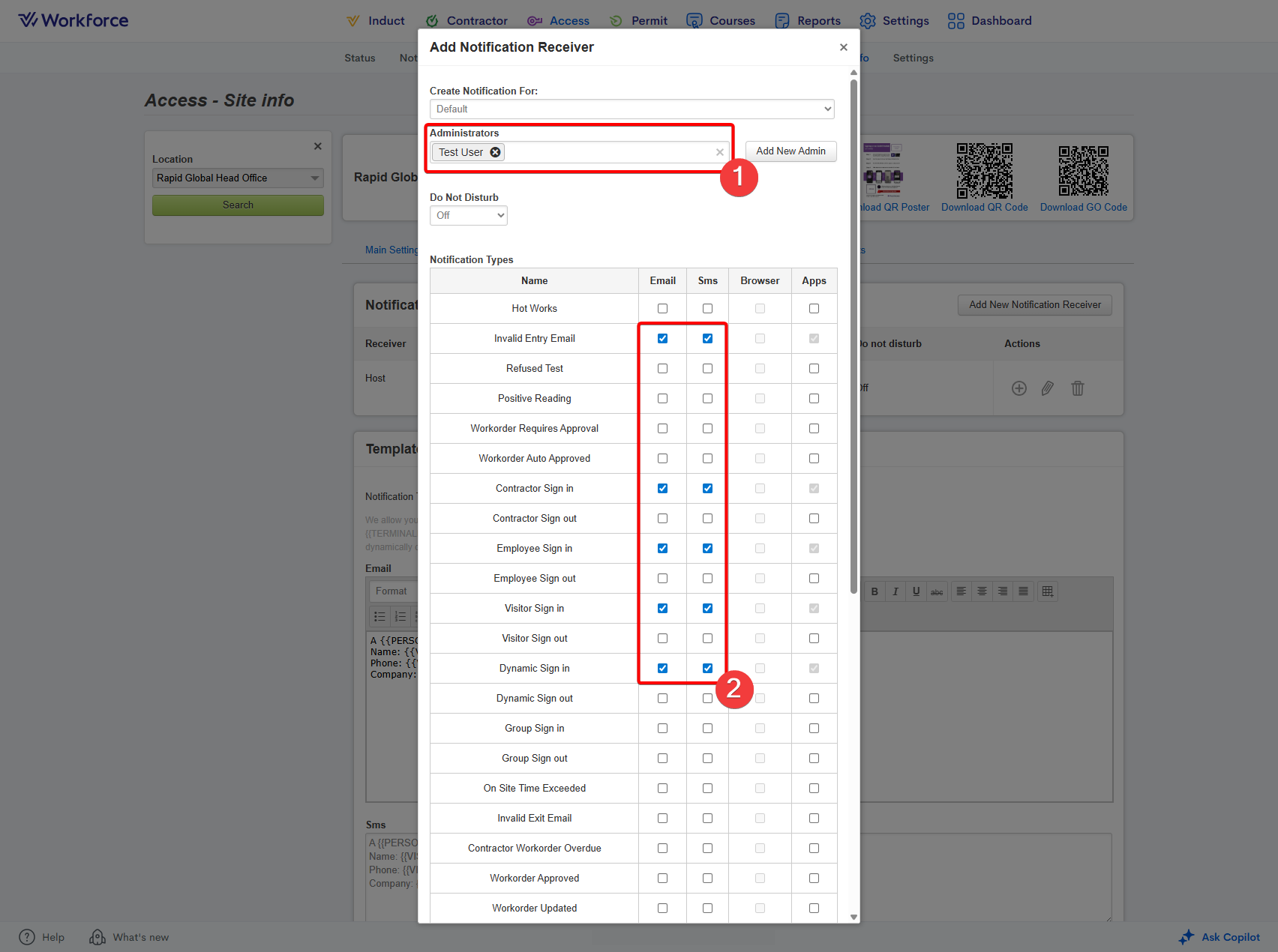 Go to the Access module. Enter the Site Info area. Select your site using the Location dropdown on the left-hand side. Go to the Notification Settings tab. Press the Pencil icon to the right of the relevant notification setup: Under the Do Not ...