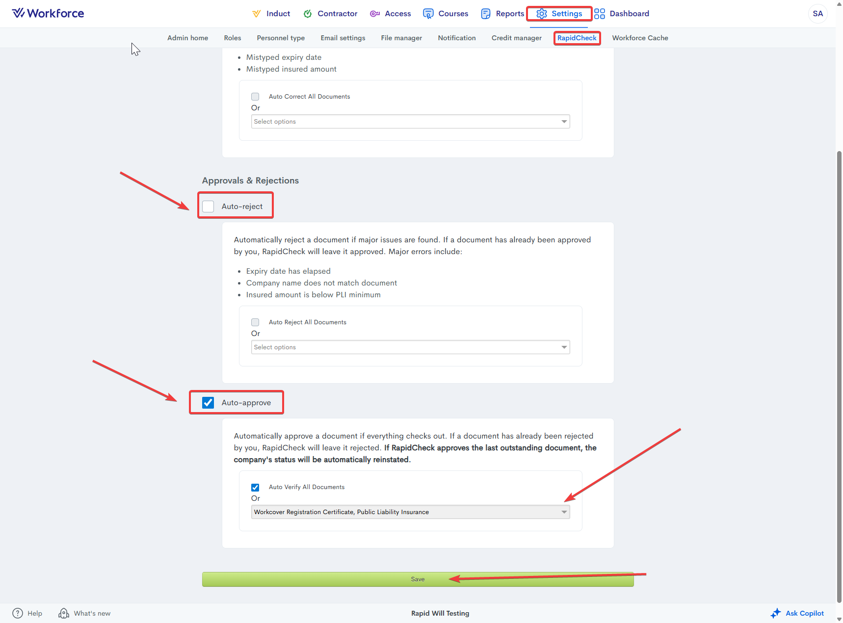 - Navigate to Workforce → Settings → RapidCheck