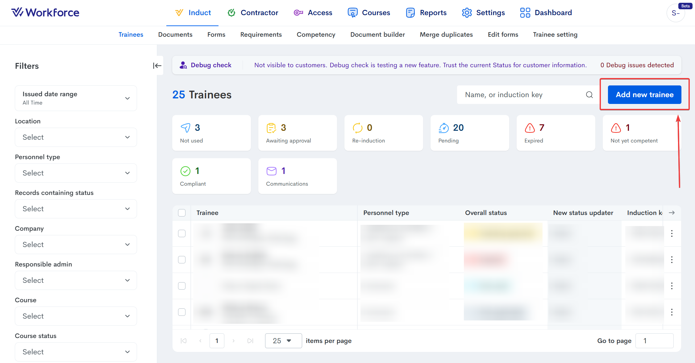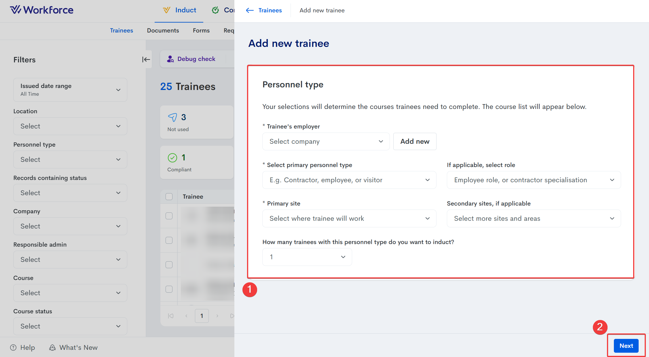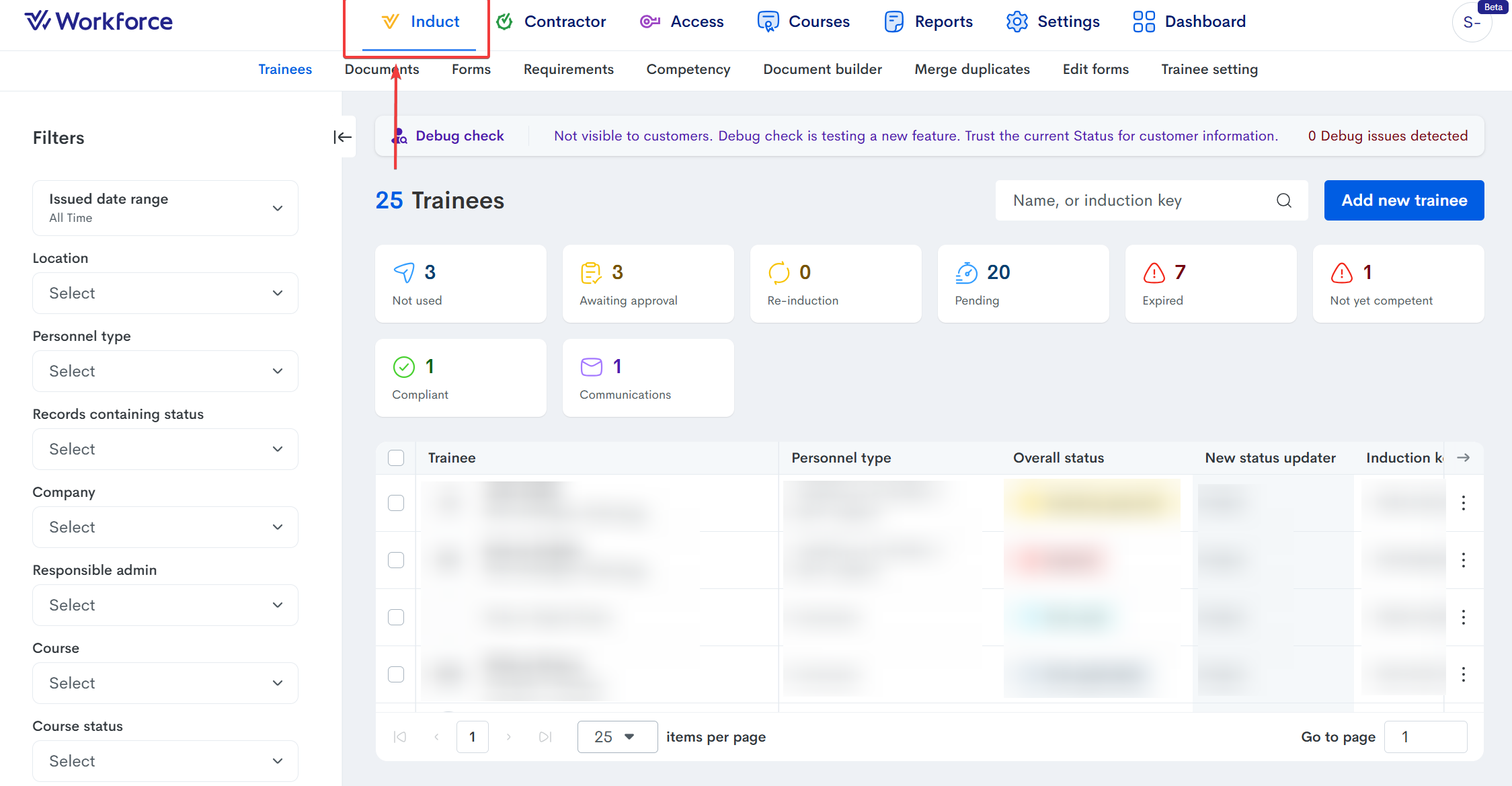 Creating a Trainee Form Select "Induct" from the below options: Select the “Edit Forms” option: You can now “Edit” an existing form or select “Add New Form”: Once in the form builder, select “Add New Field” You can then choose a “Field type” and add ...