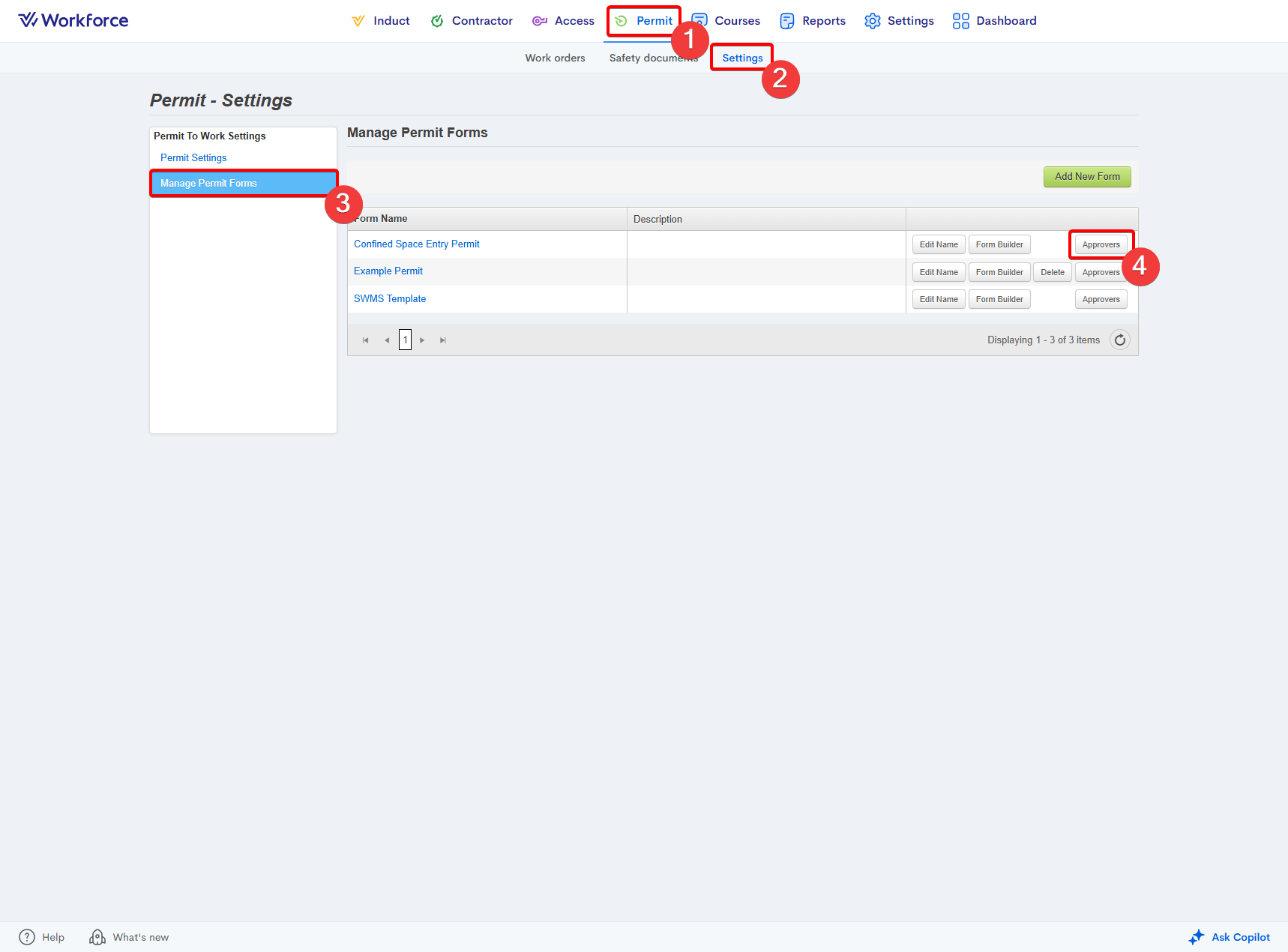 - Select the Settings tab and go to Manage Permit Forms.