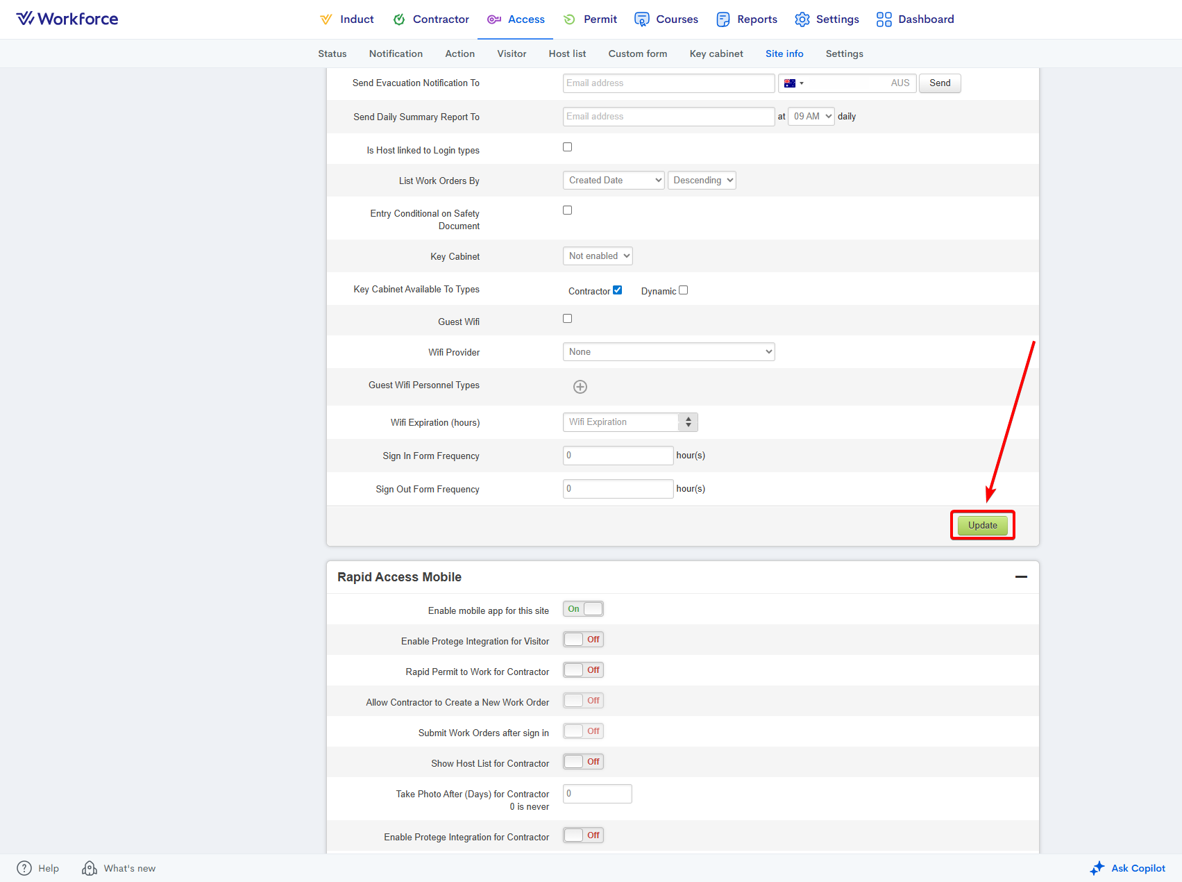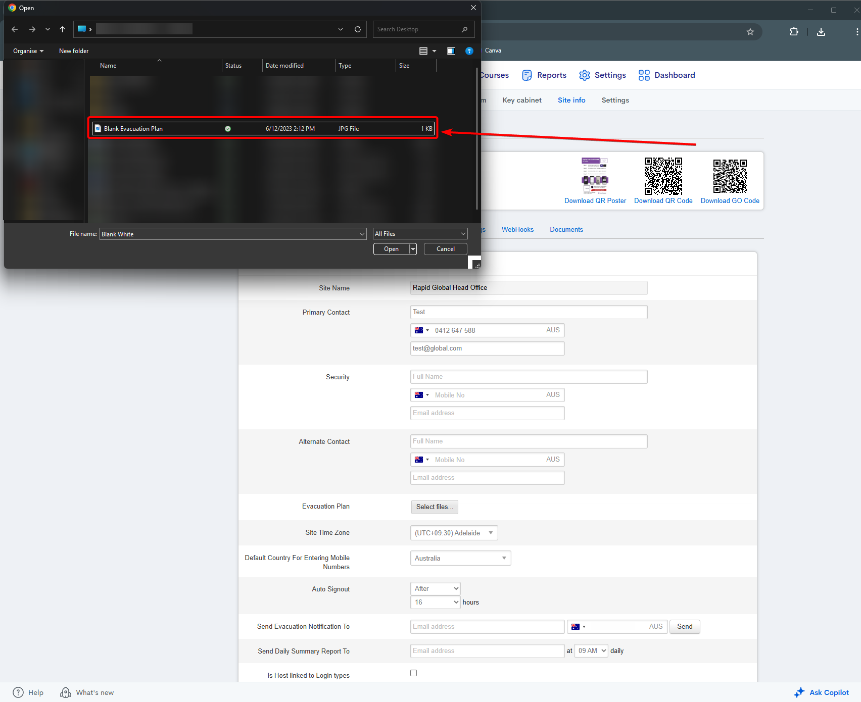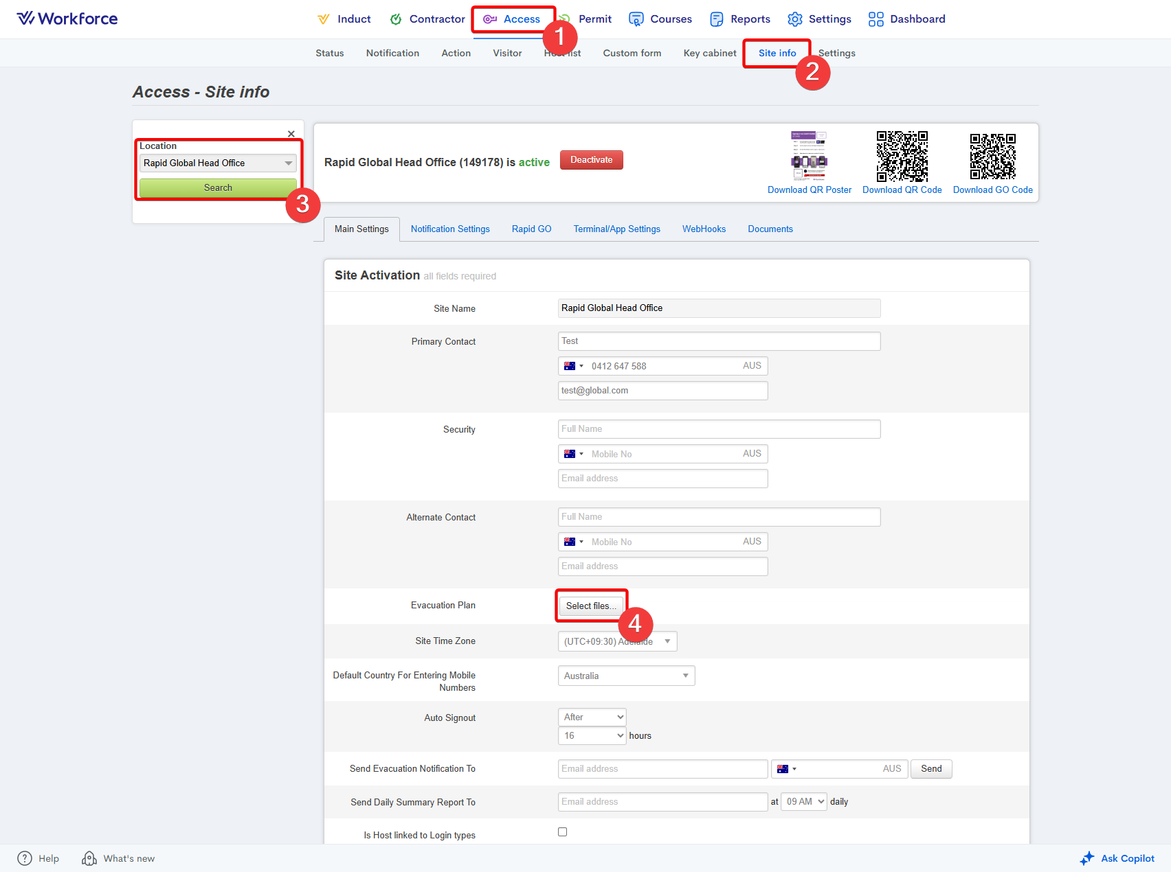 Additionally, the evacuation plan will not automatically update on the Rapid Access kiosk. Please contact Rapid’s support line at 1800 307 595 or submit a ticket to support@rapidglobal.com to update this.