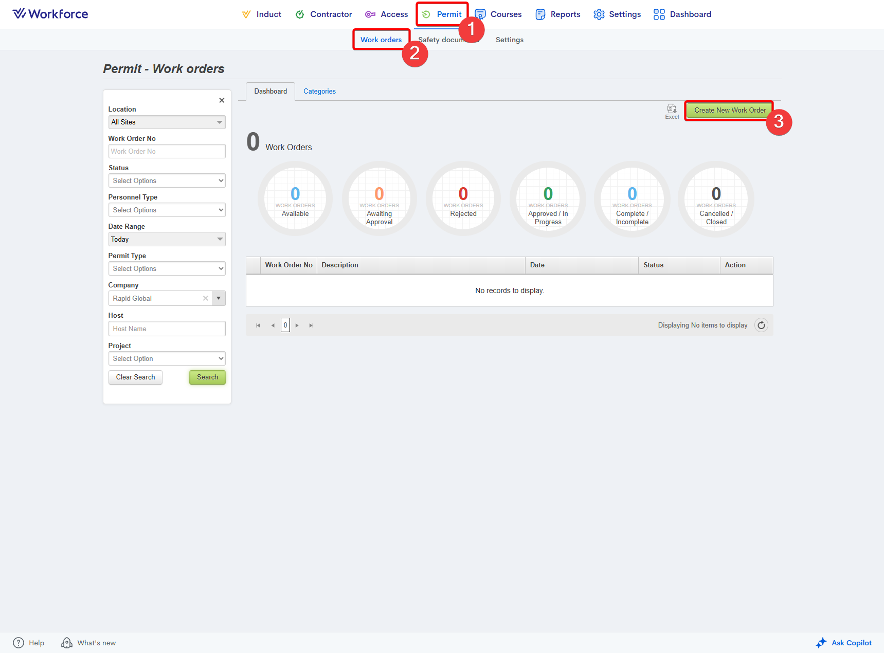 Enter the Work Orders section.