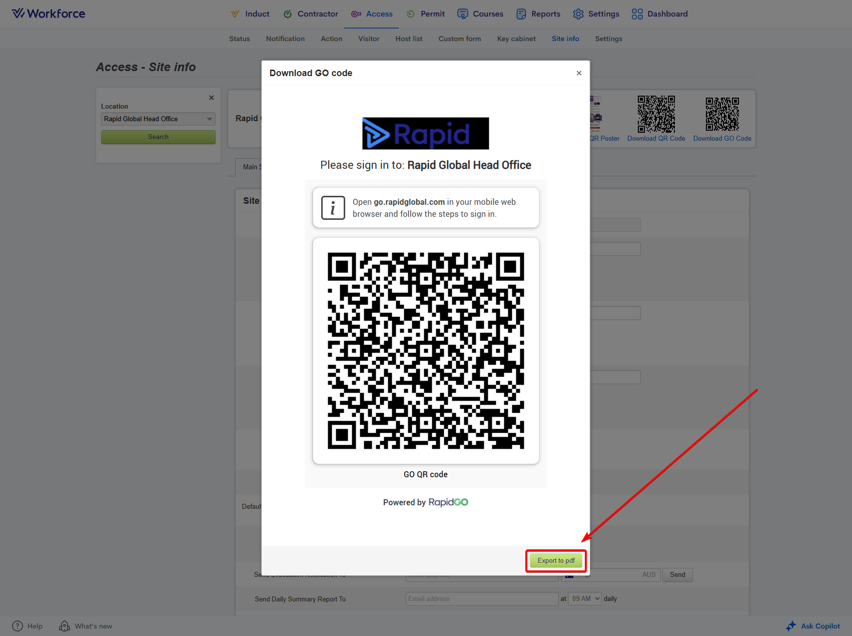How to download a site's Rapid GO QR code