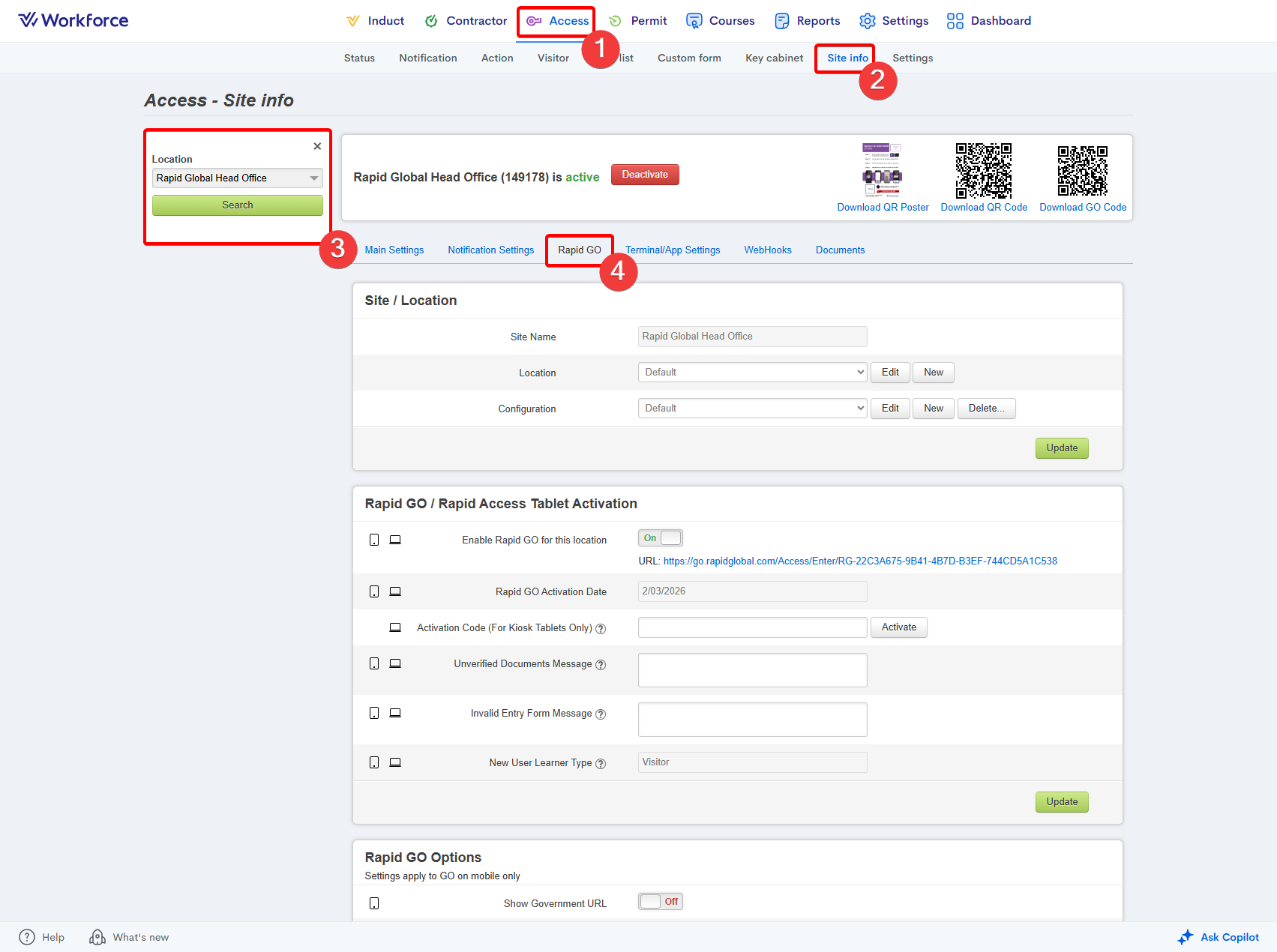 If you are unable to edit settings within the Site Info section, it's likely the site is using the Rapid GO Default Settings. In this case, these settings are updated within Access > Settings.