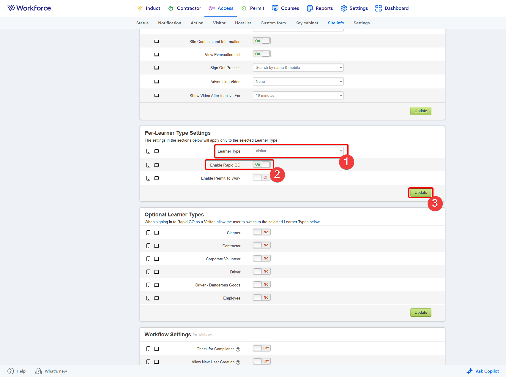 Please note: Once you've enabled the learner type, we recommend scrolling down to the Workflow Settings section and adjusting the settings to suit your preference.