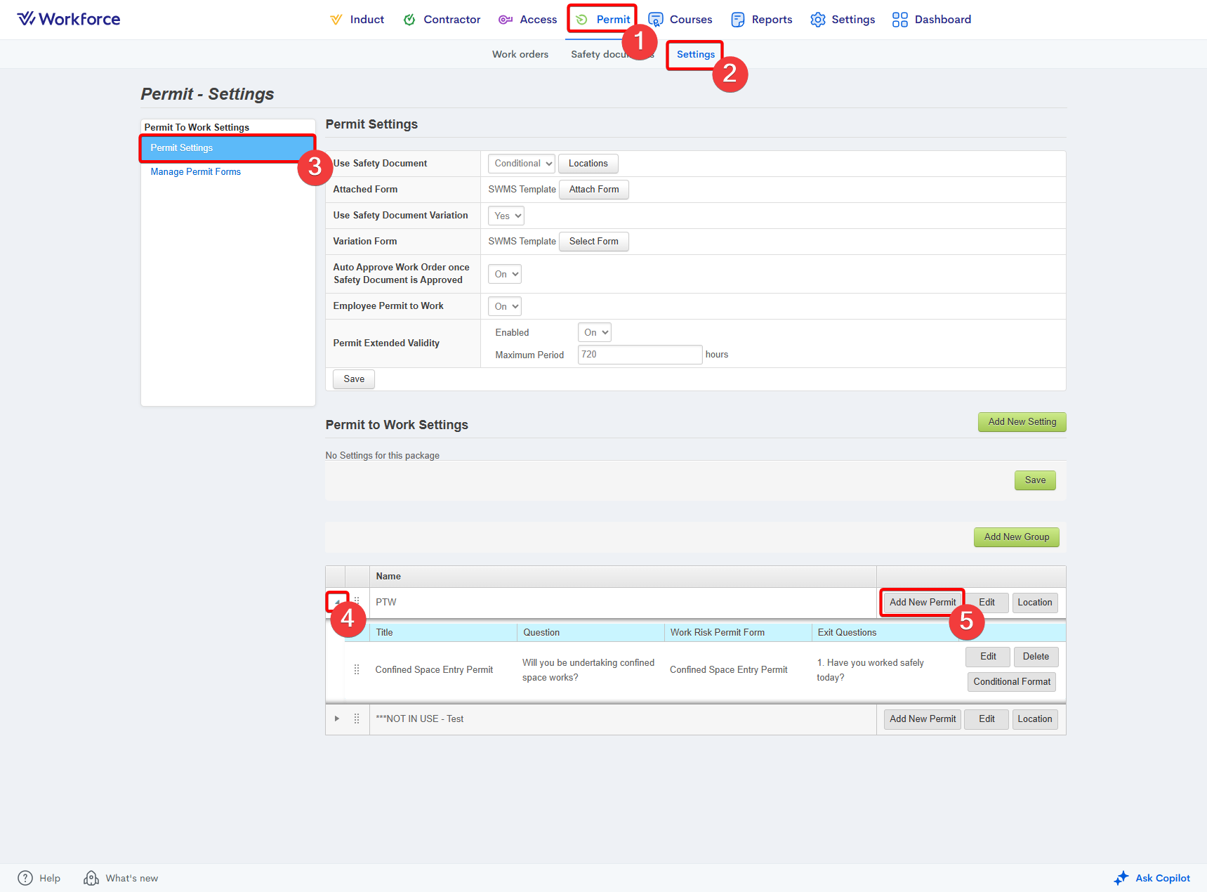 A permit group is a feature within the Permit to Work module that lets you define a set of sign‑on questions workers must answer when submitting a work order. These questions relate to the type of high‑risk work being carried out onsite. If a worker ...