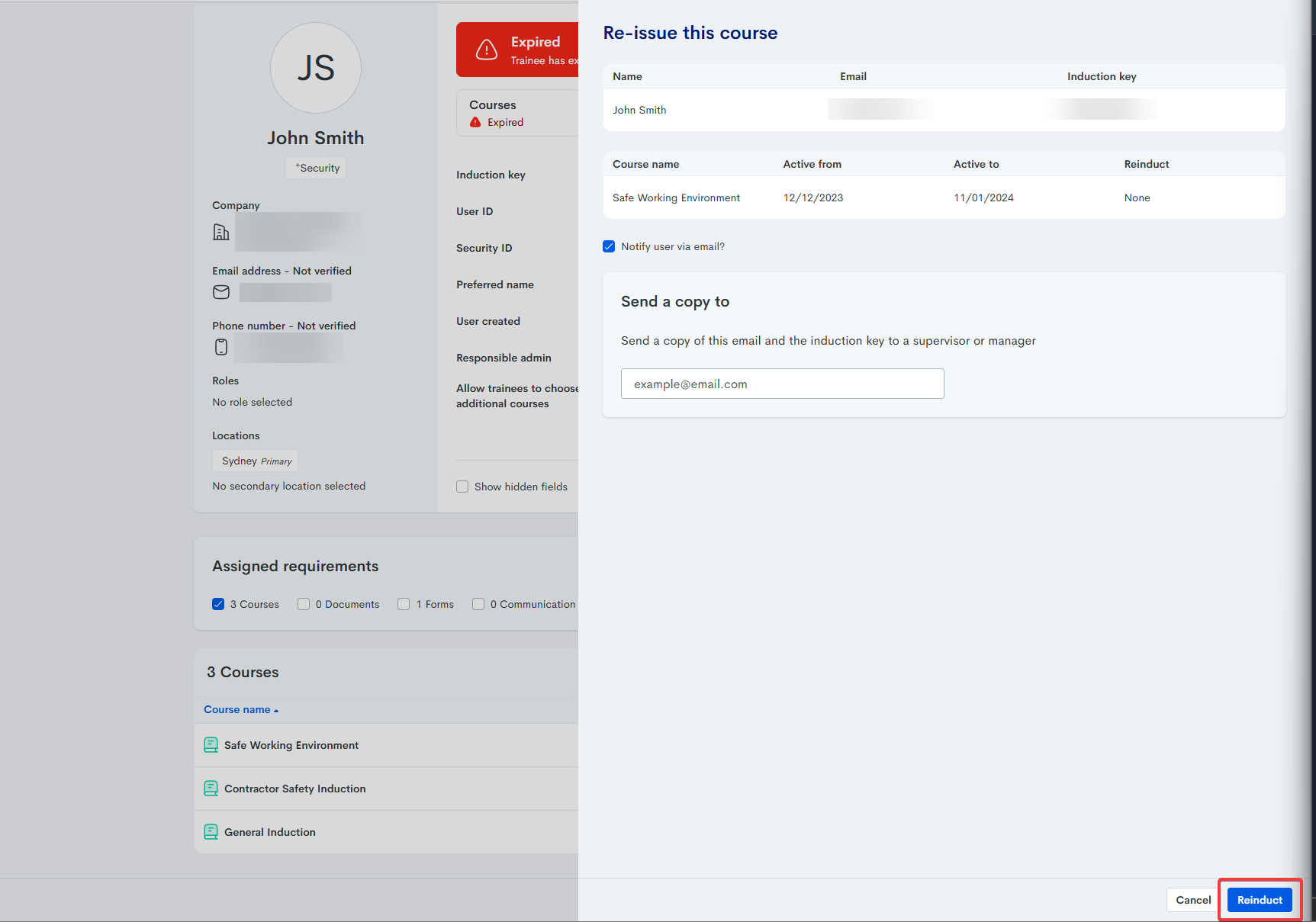 How to reinduct a trainee
