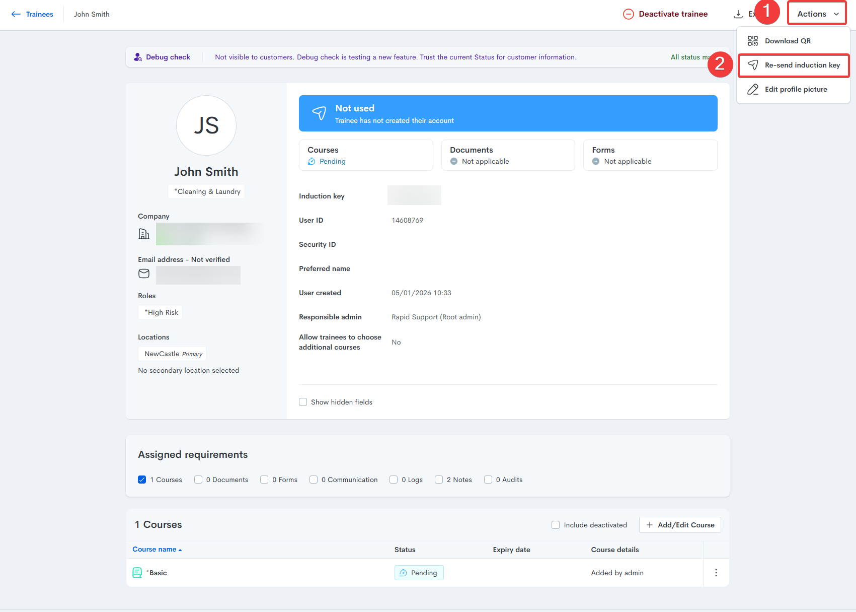 An Induction Key is an alphanumeric code beginning with “PE” used as a unique code for workers to complete their courses, upload documents, or complete forms. Induction Keys are usually sent via email.