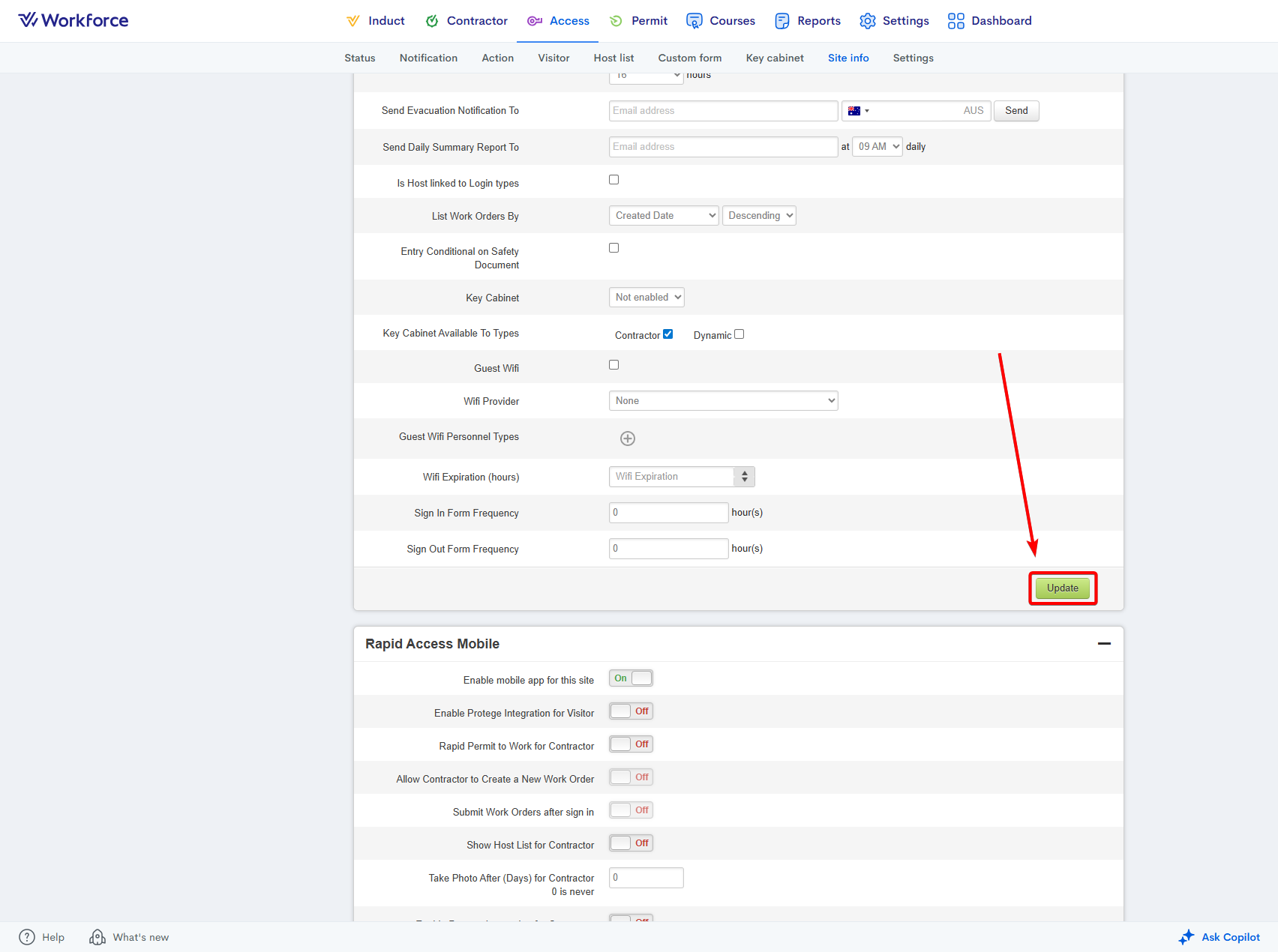 - Enter the Site Info area.