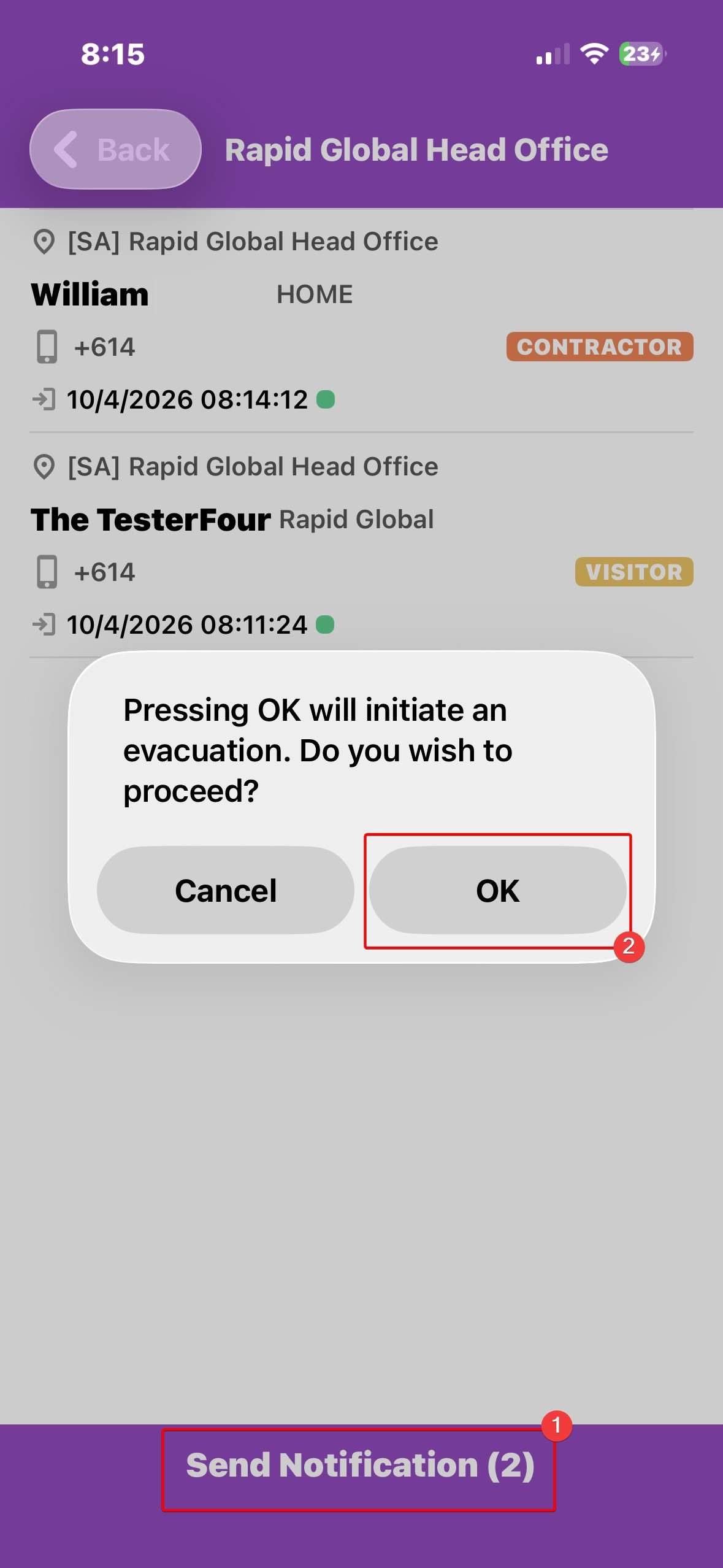 How to trigger an evacuation via the Rapid Admin app (iOS)