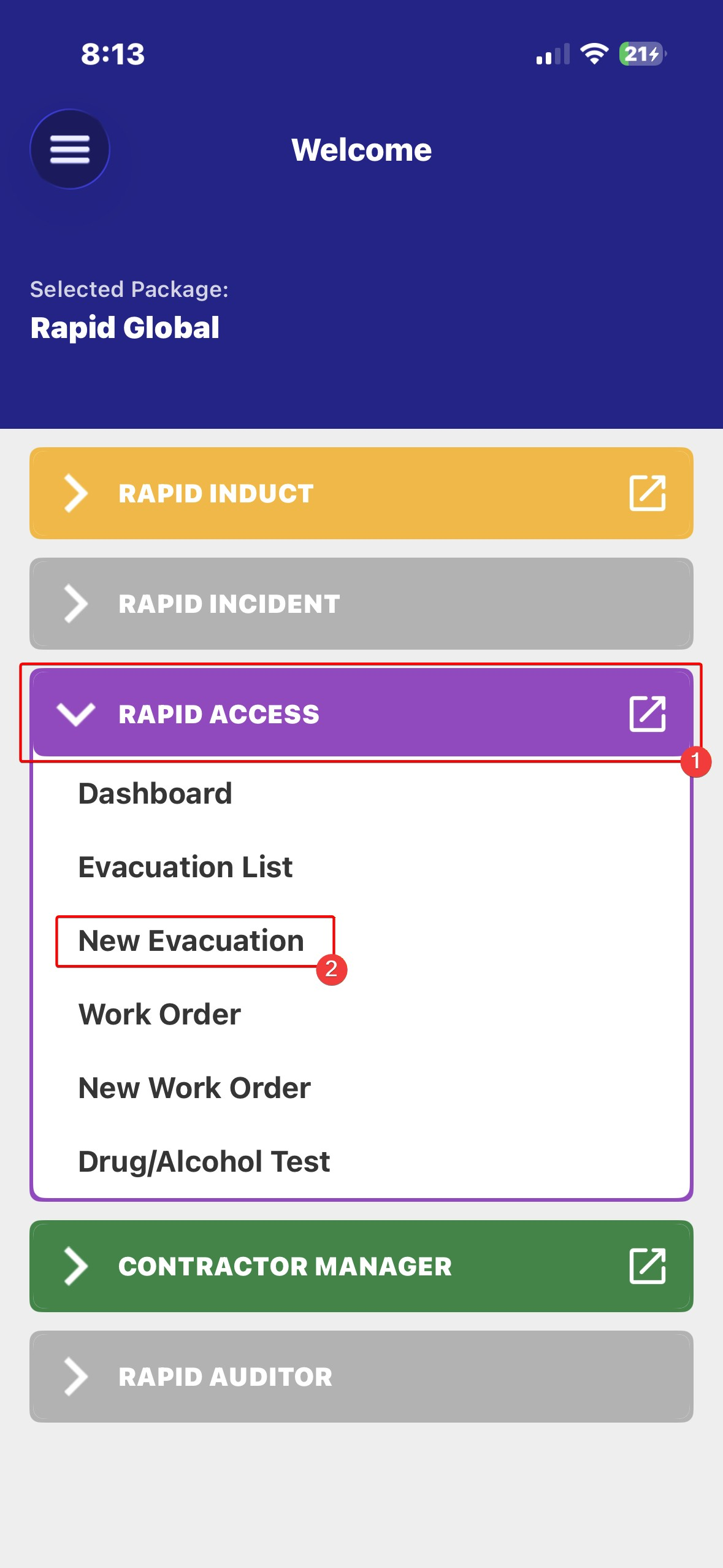 Before you start: Ensure you have administrator permissions to view and edit evacuation lists within Rapid Access. Ensure you have the latest version of the Rapid Admin app installed on your Android device. Triggering an evacuation via the Rapid ...