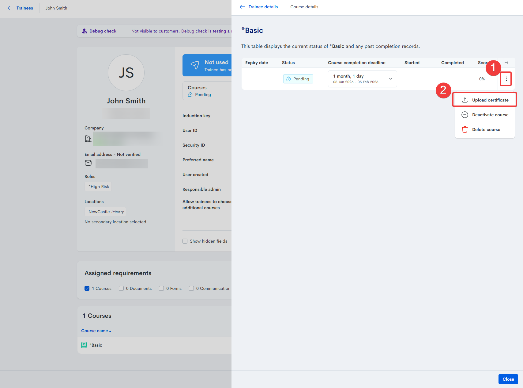 How to upload trainee course certificate