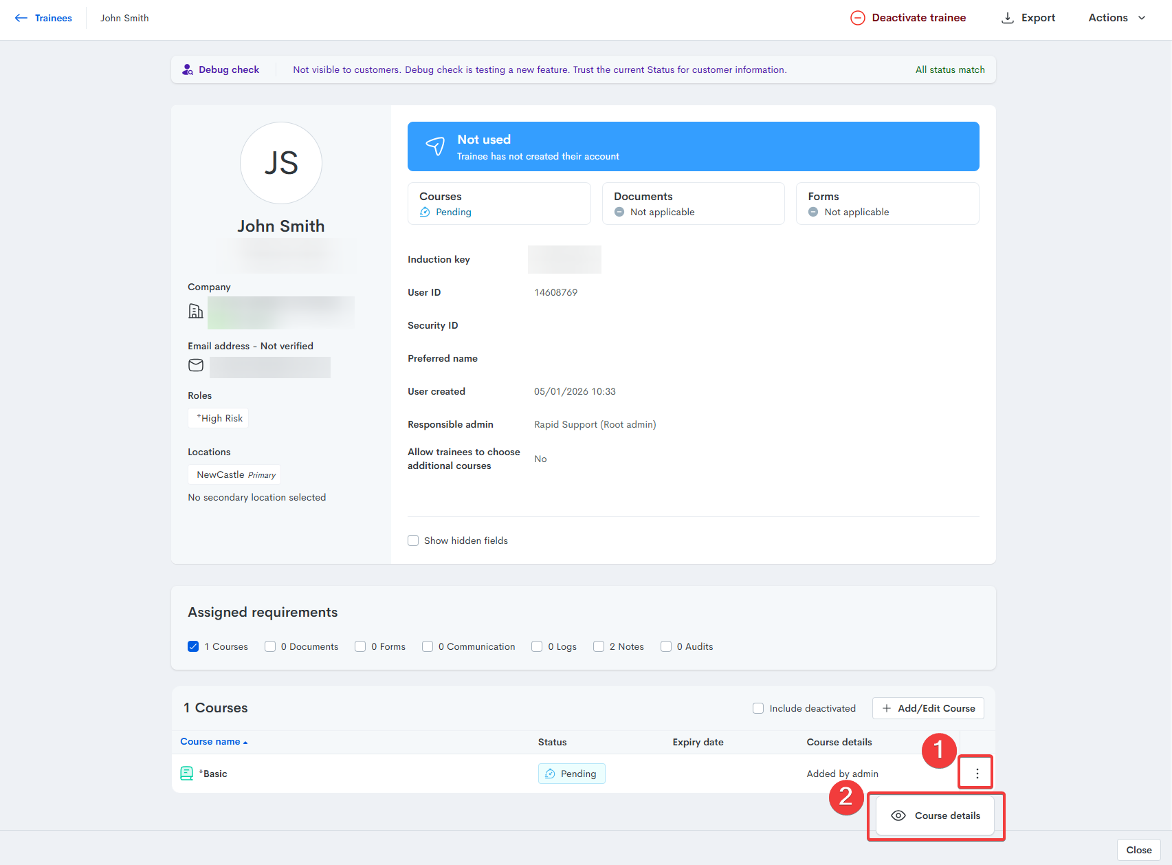 Deactivating a course from a trainee Select "Induct" from the below options: Locate the trainee by searching their name in the "Trainee Details" section: Navigate to the course you wish to be deactivated and select the drop-down arrow to the right of ...