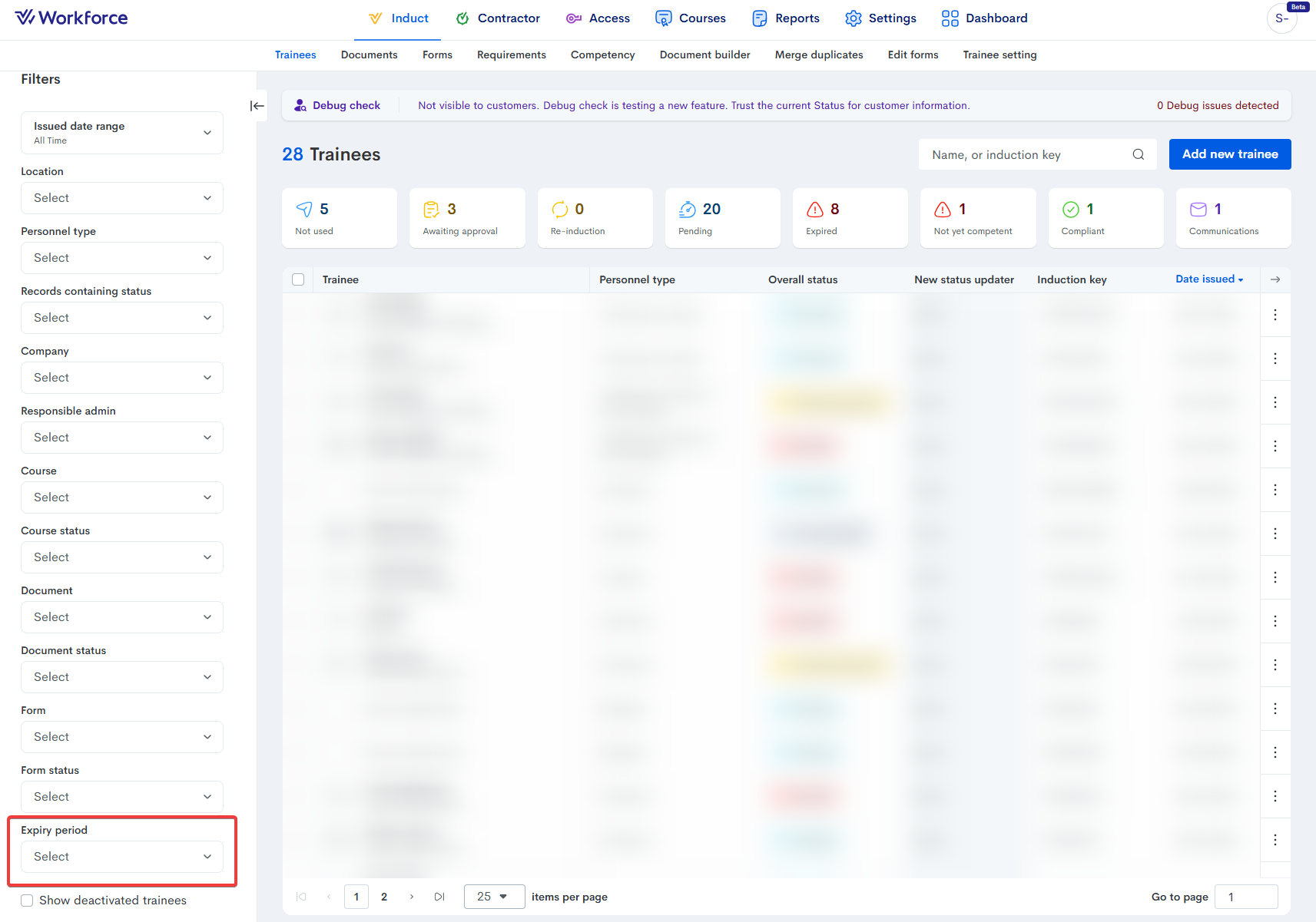 Use the search parameters to select “Expired”. This will filter all expired inductees or inductees expired within a certain period of time: