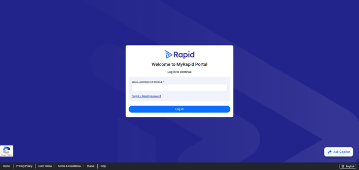 - On a personal computer, open a web browser and go to: https://my.rapidglobal.com/account/logon