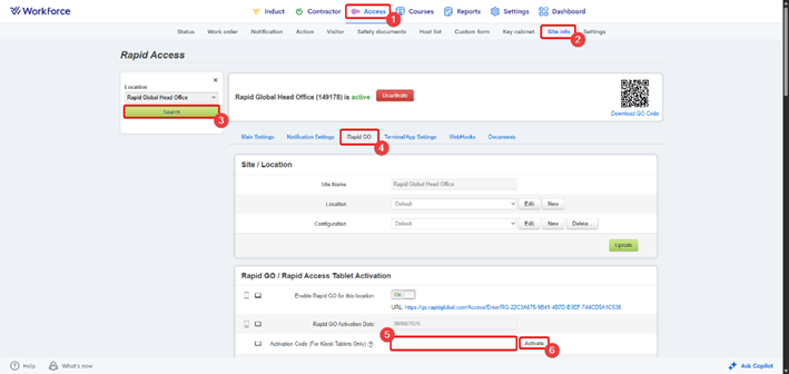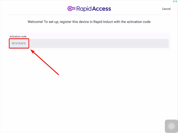 - Enter the code you copied from Step 2 within the 'Activation Code (For Kiosk Tablets Only)' area.