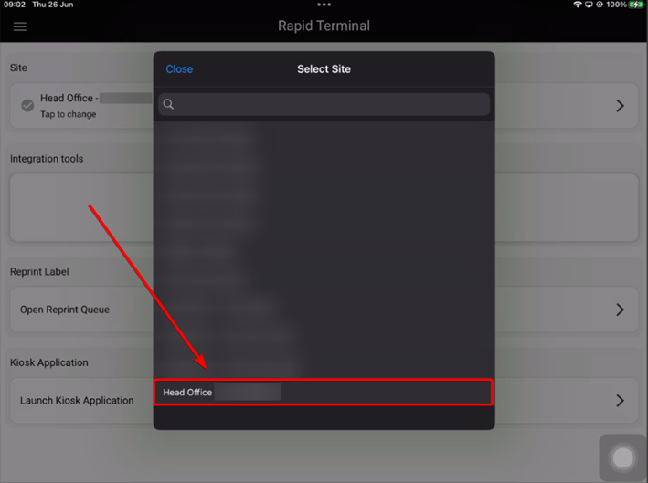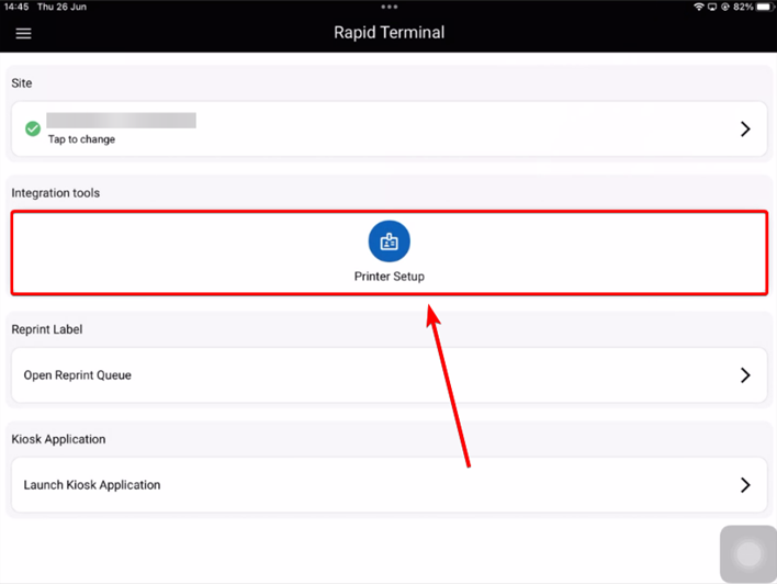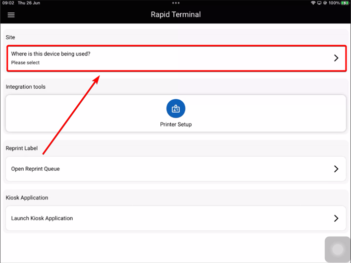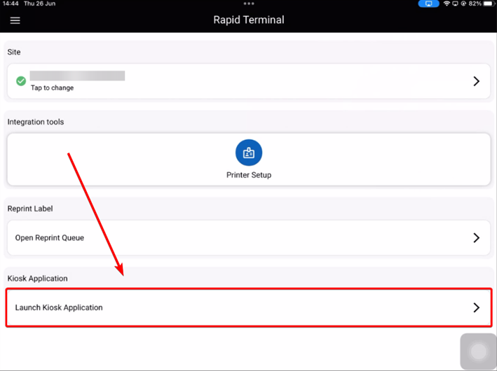 - Within the main settings of the 'Rapid Terminal' app, press 'Launch Kiosk Application':