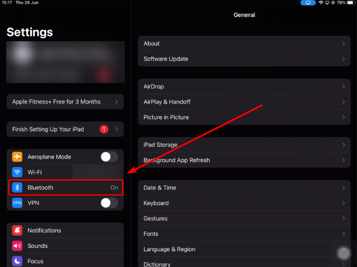 - Scroll to ‘Bluetooth’ (option 6/7) and press [OK].